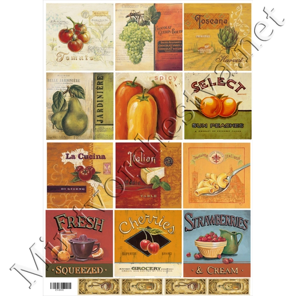 Декупажная карта 29,5х42 "Карточки: фрукты, овощи и сыр."