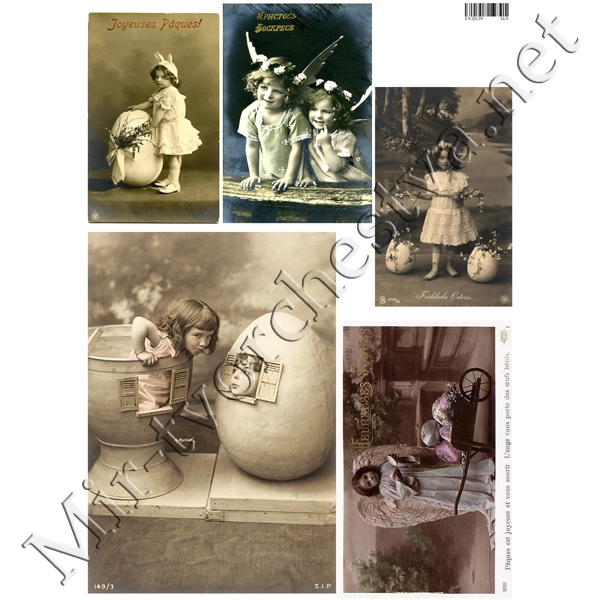 Декупажная карта 29,5х42 "Ретрооткрытки: Дети, Пасха"