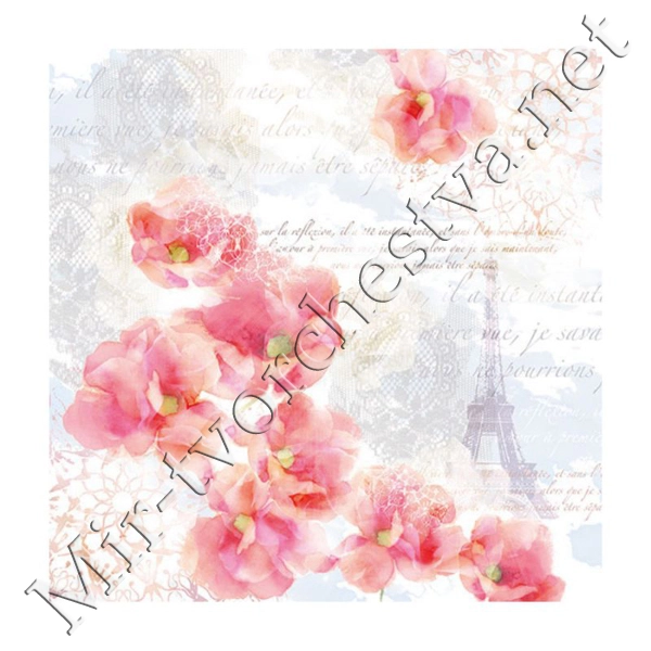Декупажная салфетка "Цветы и Париж", 33*33 см, 18,5 г/м2, Abiente