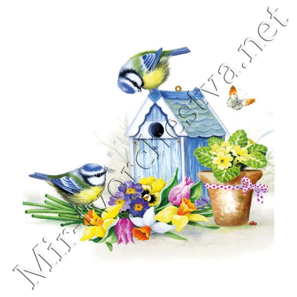 Декупажная салфетка "Скворечники и цветы", 33*33 см, 18,5 г/м2, Abiente