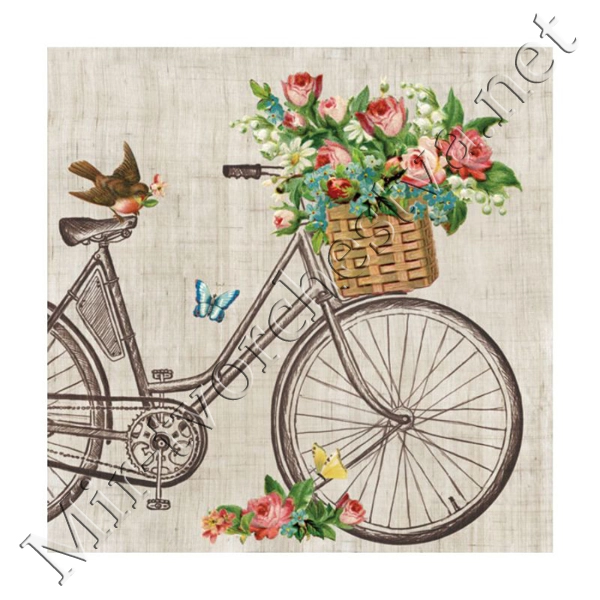 Декупажная салфетка "Велосипед с цветами", 33*33 см, 18,5 г/м2, Abiente
