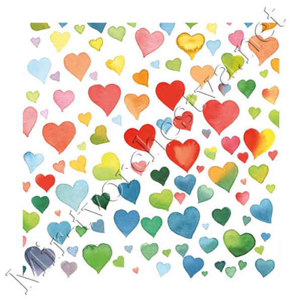 Декупажная салфетка "Акварельные цветные сердца", 33*33 см, 18,5 г/м2, Abiente