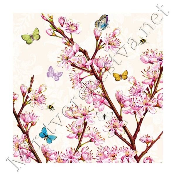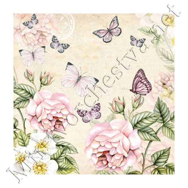 Декупажная салфетка "Цветы и бабочки", кремовые, 33*33 см, 18,5 г/м2, Abiente