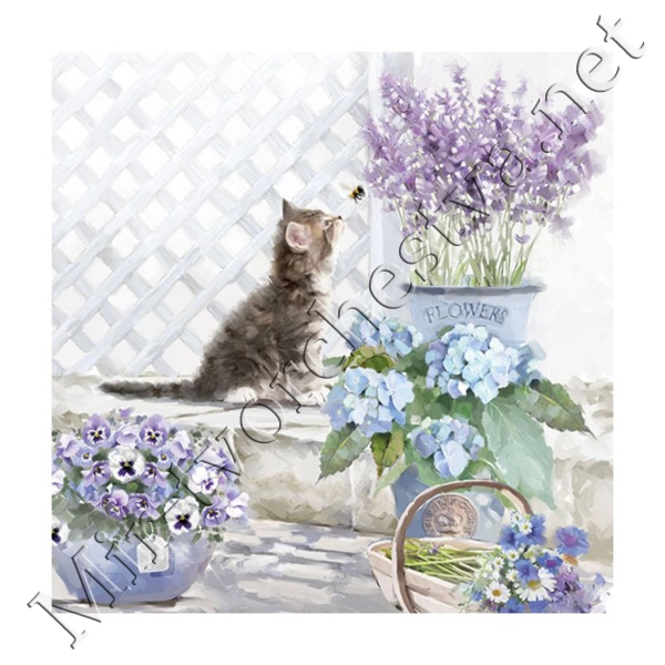 Декупажная салфетка "Котик и цветы", 33*33 см, 18,5 г/м2, Abiente