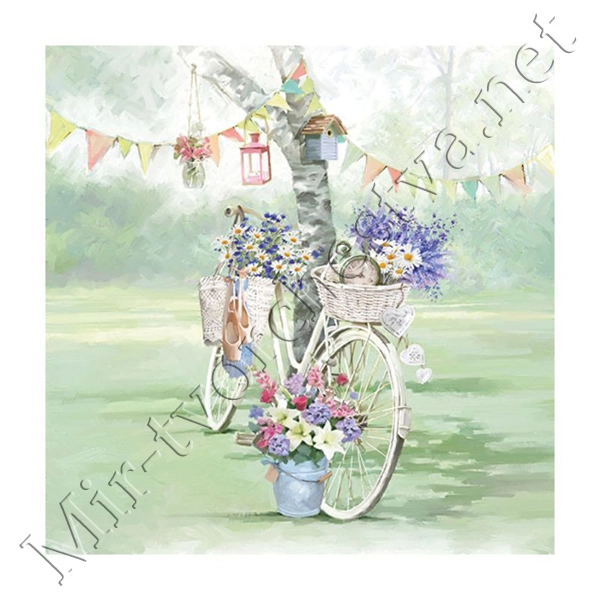 Декупажная салфетка "Велосипед с цветами", 33*33 см, 18,5 г/м2, Abiente