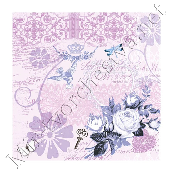Декупажная салфетка "Винтажные цветы", фиолетовые, 33*33 см, 18,5 г/м2, Abiente