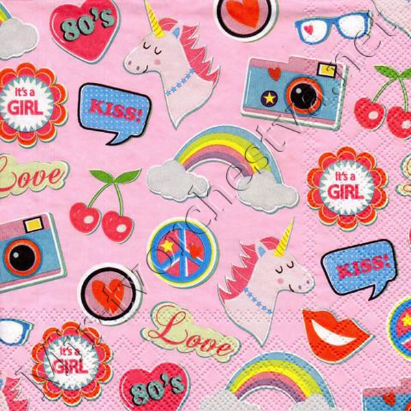 Декупажная салфетка "Patches & Pins", Фиолетовые, 33*33 см, 18,5 г/м2, Ambiente