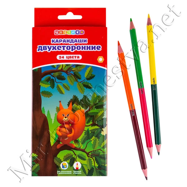 Набор двухсторонних цветных карандашей, 12шт/24цв, Цветик