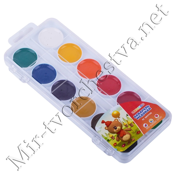 Набор акварели, Часы, пластиковая коробка, 12 цветов, Цветик