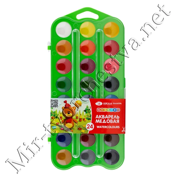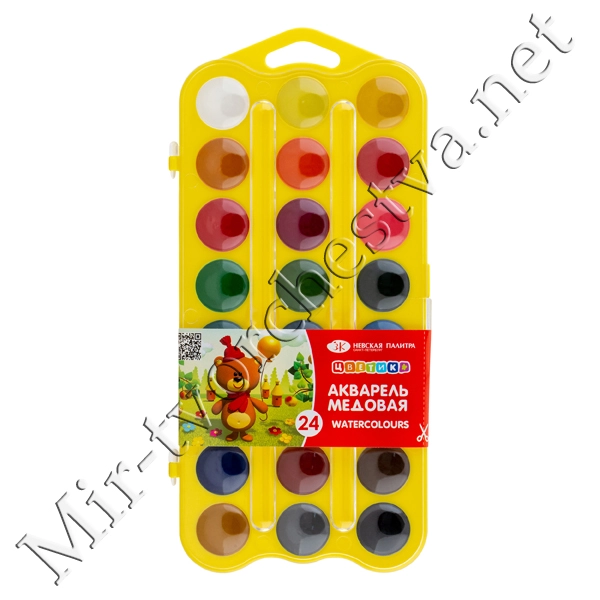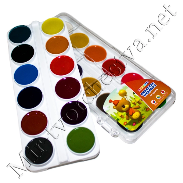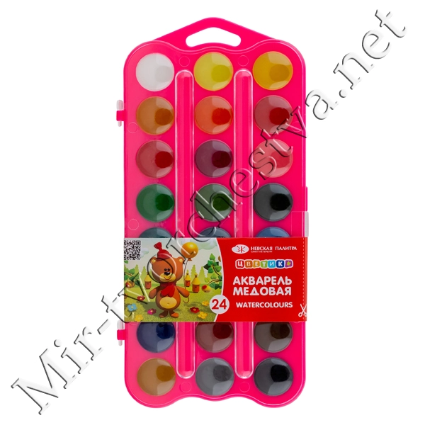 Набор акварели Медовой, пластиковая упаковка, 24 цвета (12 базовых, 6 перламутровых, 6 флуорисцентных), Цветик