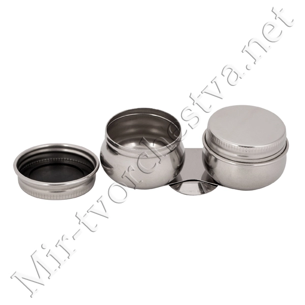Масленка двойная с крышкой, металл, диаметр 4.2см, высота 3.5см, Сонет