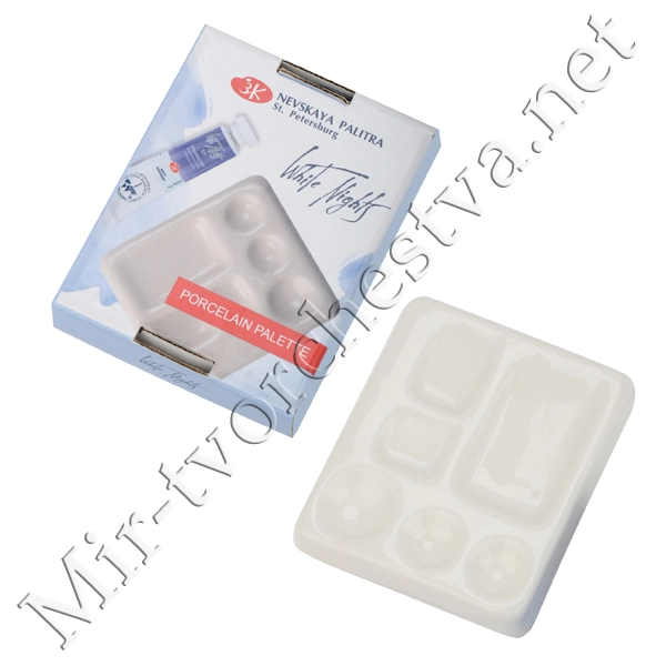 Палитра фарфоровая, 7,5x8,5x1,4 см, 6 ячеек, Белые Ночи