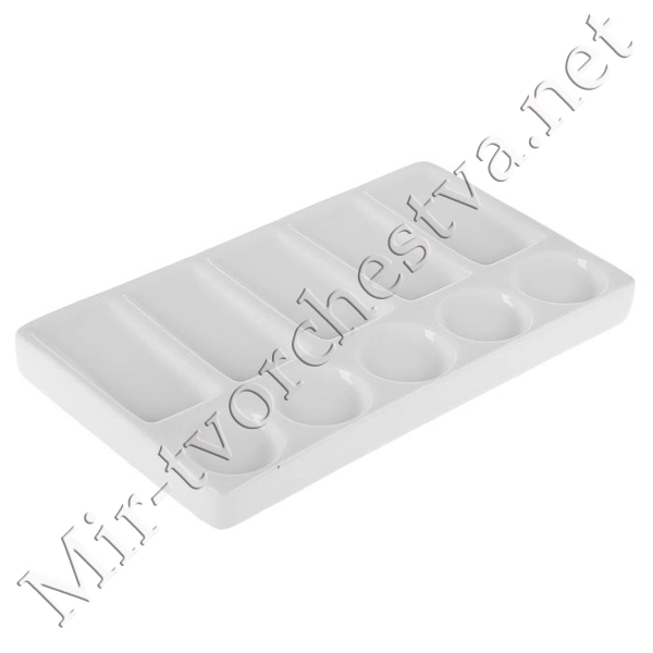 Палитра фарфоровая, прямоугольная, 11х19 см,10 ячеек, Сонет