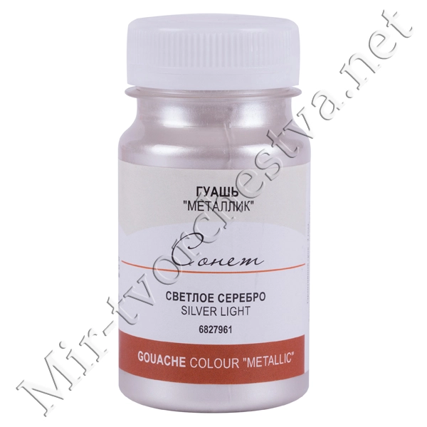 Краска гуашевая металлик, Серебро светлое, 100мл, Сонет