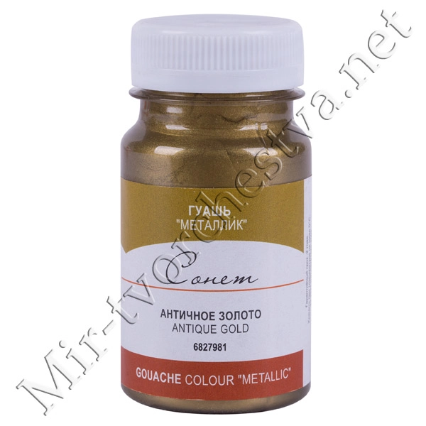 Краска гуашевая металлик, Золото античное, 100мл, Сонет