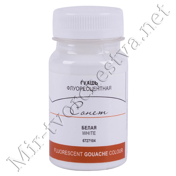 Краска гуашевая флуоресцентная, Белая, 100мл, Сонет