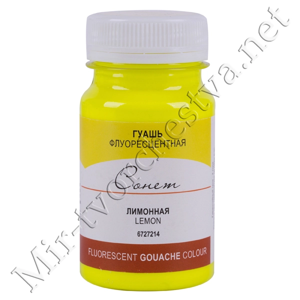 Краска гуашевая флуоресцентная, Лимонная, 100мл, Сонет