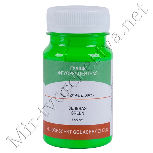 Краска гуашевая флуоресцентная, Зеленая, 100мл, Сонет