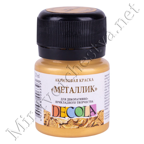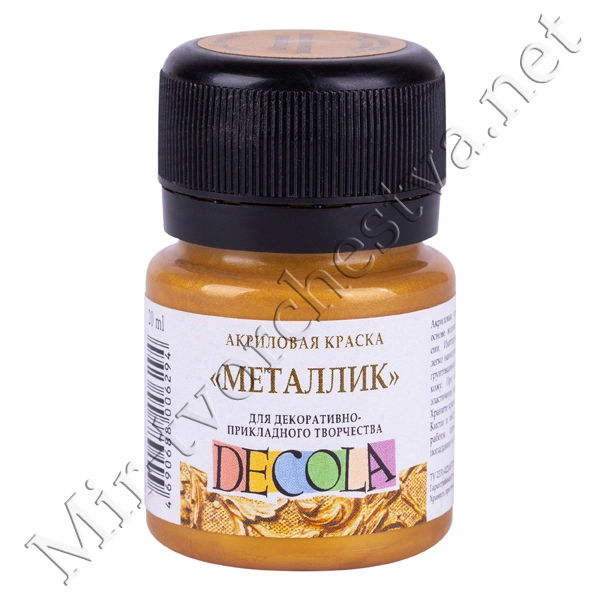 Краска акриловая, Золото олимпик, металлик, 20мл, Decola