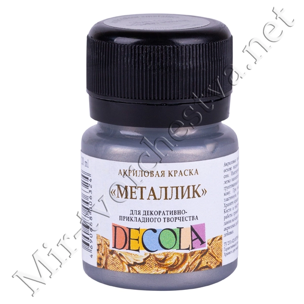 Краска акриловая, Серебро темное, металлик, 20мл, Decola