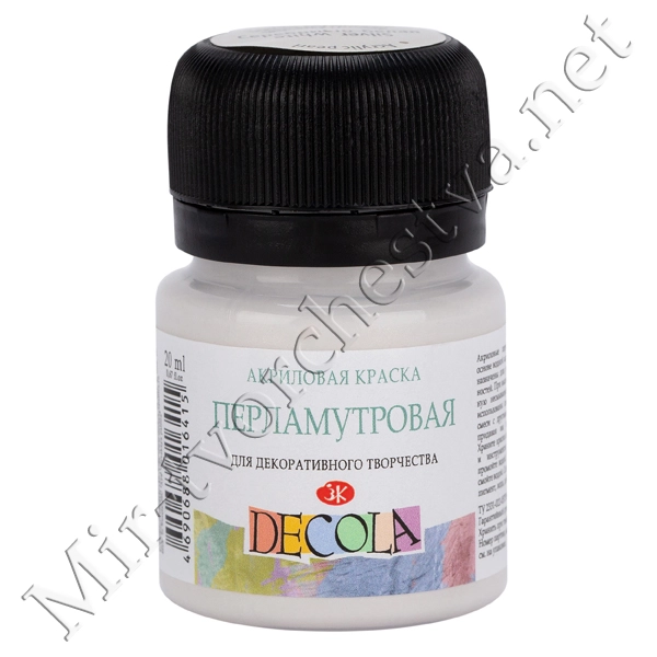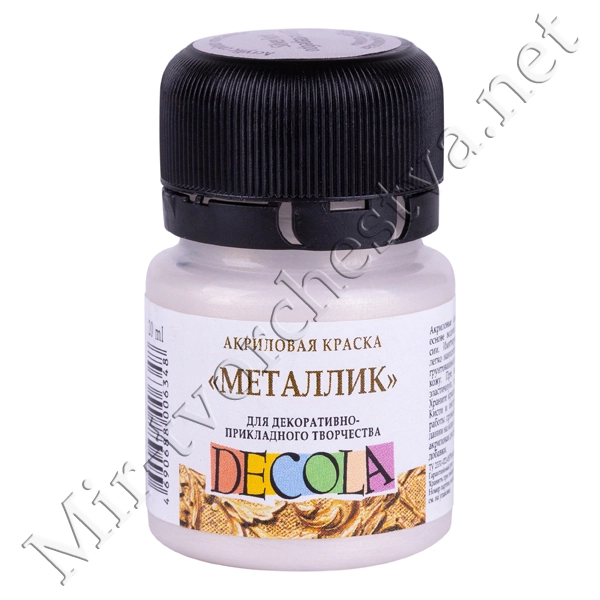 Краска акриловая, Серебристо-белая, перламутр, 20мл, Decola