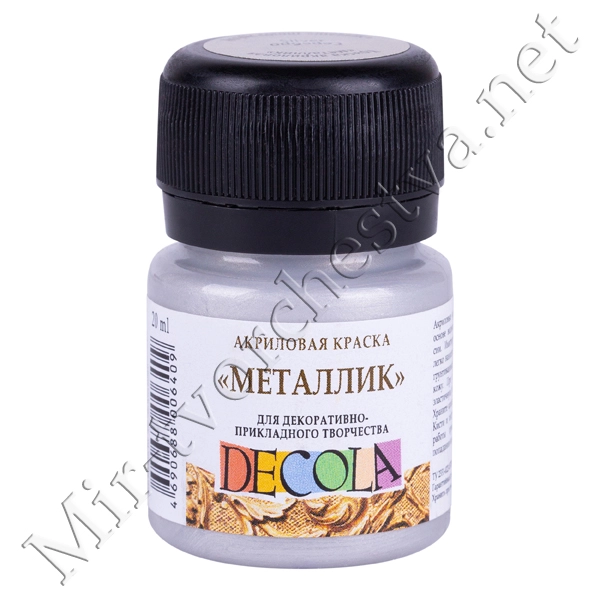 Краска акриловая, Серебро, металлик, 20мл, Decola