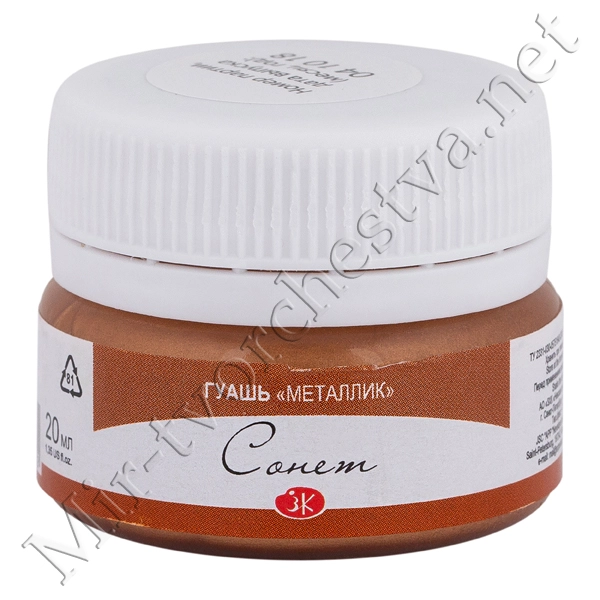Краска гуашевая металлик, Бронза, 20мл, Сонет