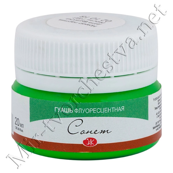 Краска гуашевая флуоресцентная, Зеленая, 20мл, Сонет