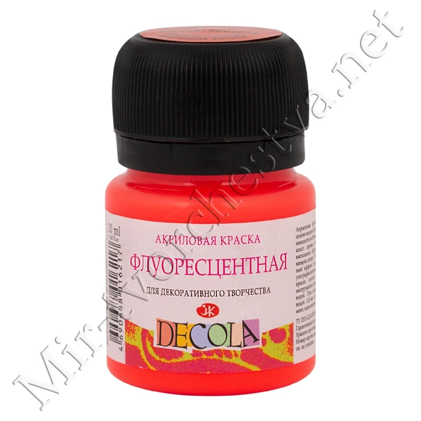 Краска акриловая, Красная светлая, флуоресцентный, 20мл, Decola