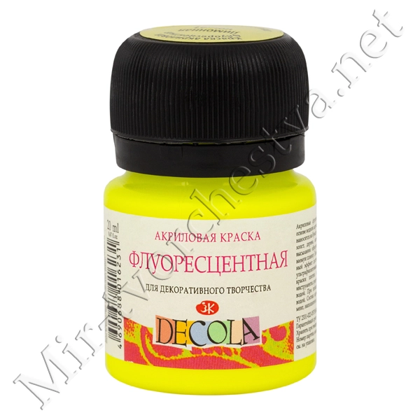 Краска акриловая, Лимонная, флуоресцентный, 20мл, Decola