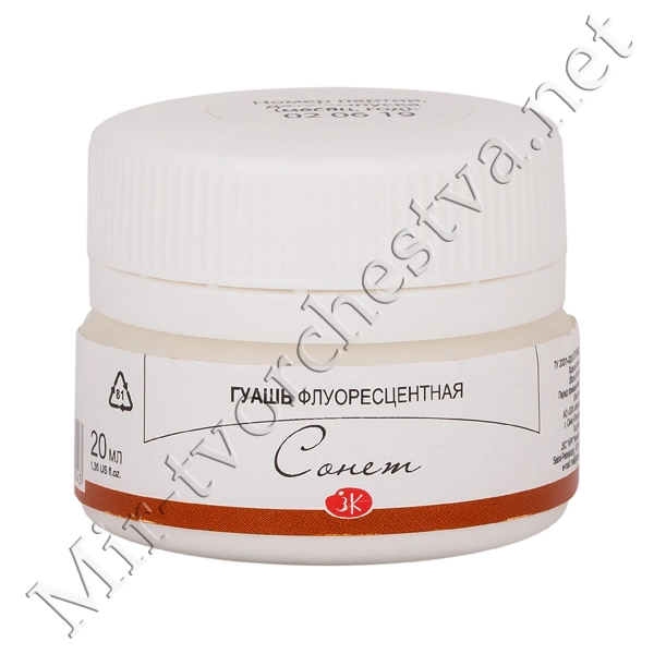 Краска гуашевая флуоресцентная, Белая, 20мл, Сонет