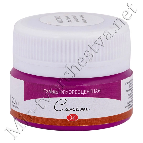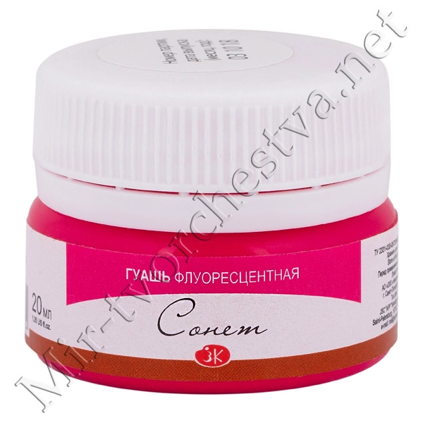 Краска гуашевая флуоресцентная, Карминовая, 20мл, Сонет