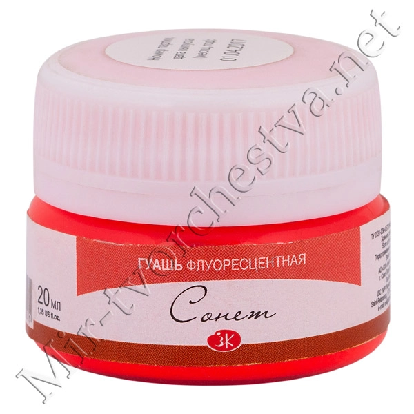 Краска гуашевая флуоресцентная, Красная, 20мл, Сонет