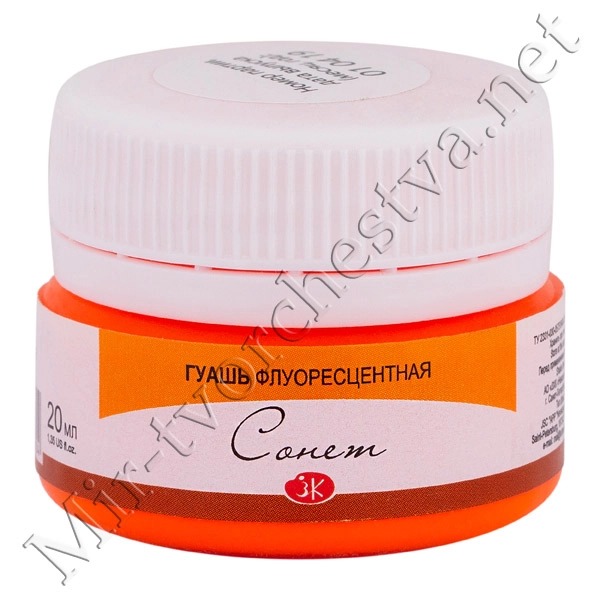 Краска гуашевая флуоресцентная, Оранжевая, 20мл, Сонет