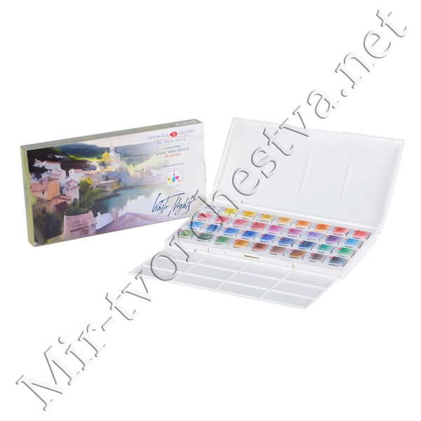 Набор акварельных красок IWS 36 цветов в кюветах в пластике с палитрой, Белые Ночи