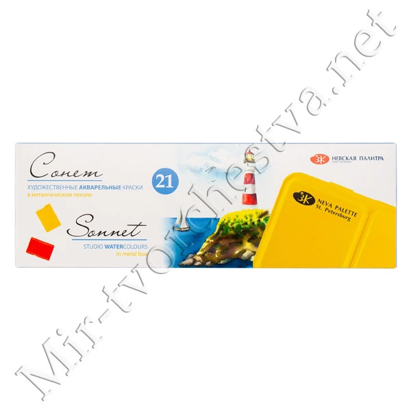 Набор акварель 21 кювета в металлическом пенале, Сонет