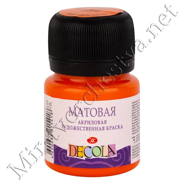 Краска акриловая, Оранжевая, матовый, 20мл, Decola