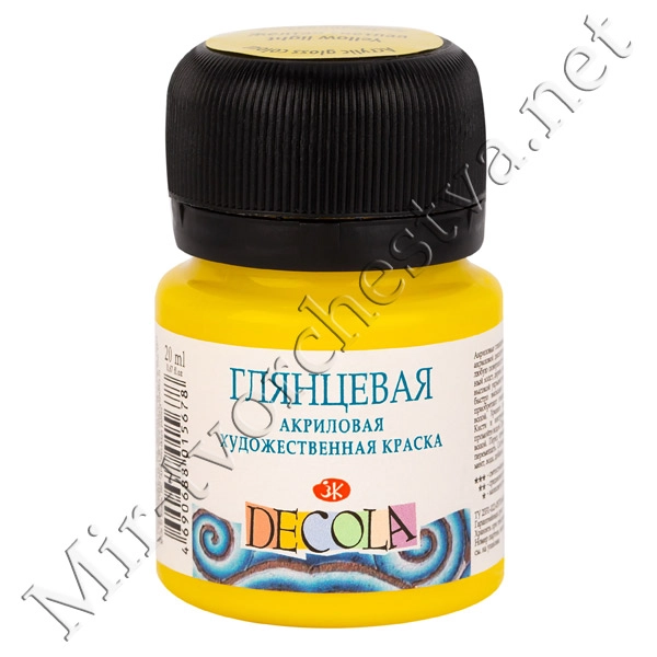 Краска акриловая, Желтая светлая, глянцевая, 20мл, Decola
