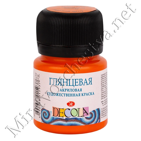 Краска акриловая, Оранжевая, глянцевая, 20мл, Decola