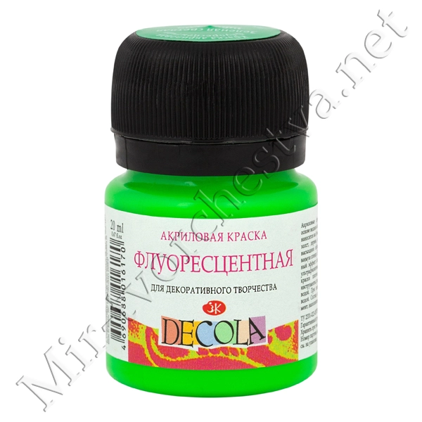 Краска акриловая, Зеленая светлая, флуоресцентный, 20мл, Decola