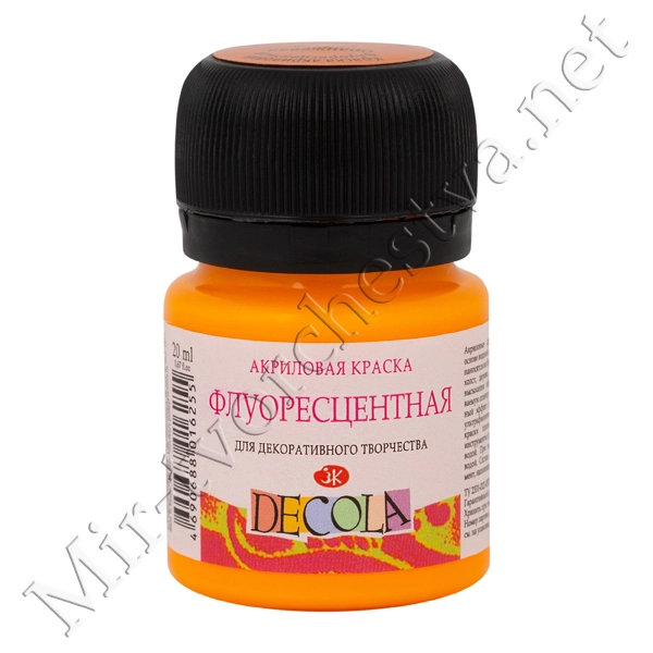 Краска акриловая, Оранжевая, флуоресцентный, 20мл, Decola