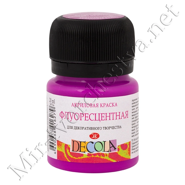 Краска акриловая, Фиолетовая средняя, флуоресцентный, 20мл, Decola