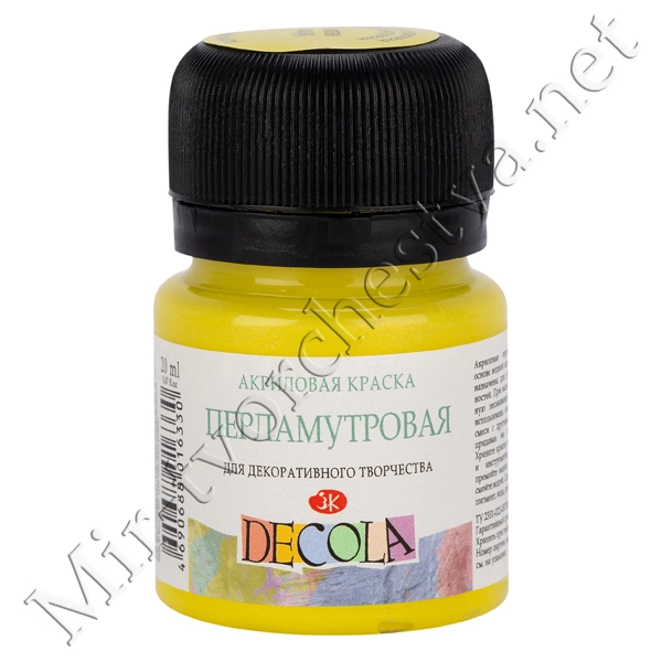 Краска акриловая, Желтая, перламутр, 20мл, Decola