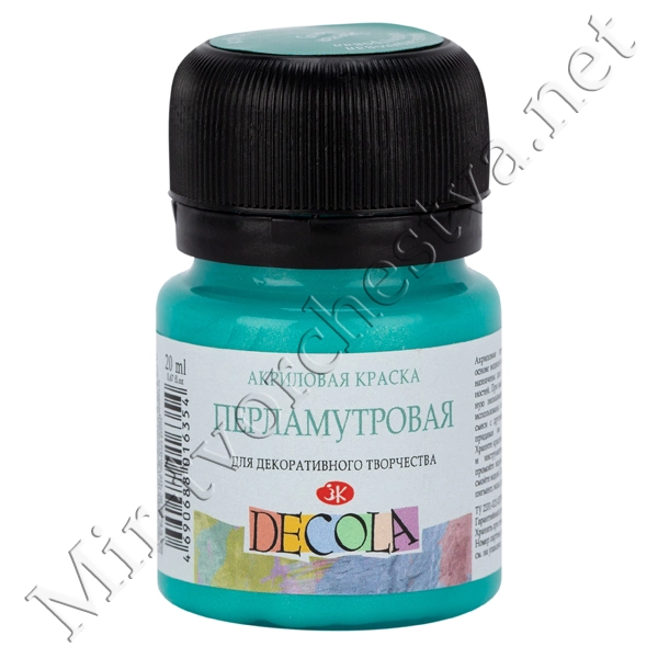 Краска акриловая, Бирюзовая, перламутр, 20мл, Decola