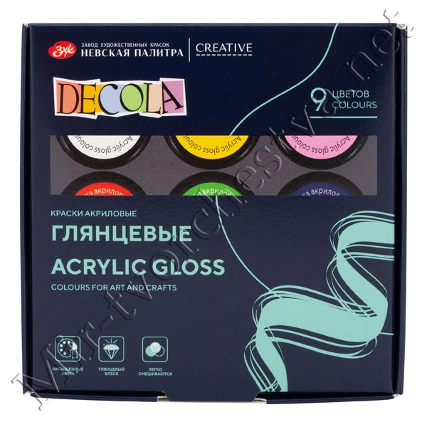 Краска акриловая, Чёрная, глянцевая, 50мл, Decola