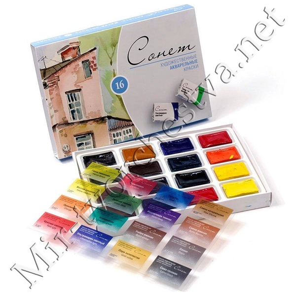 Набор акварельных красок, 16 цв., кювета, картон, Сонет