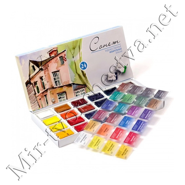 Набор акварельных красок, 24 цв., кювета, картон, Сонет