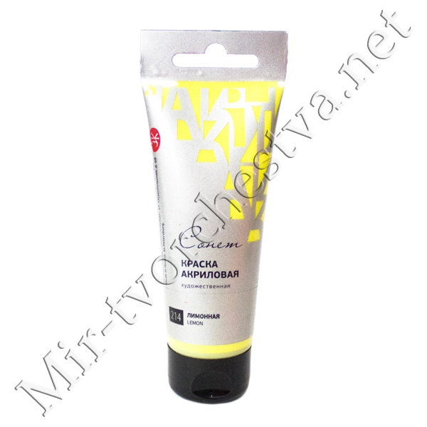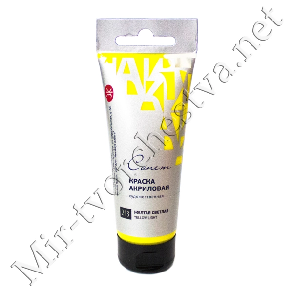 Краска акриловая, Желтая светлая, 75мл, Сонет