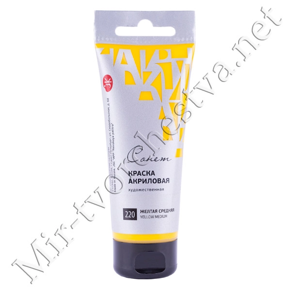 Краска акриловая, Желтая средняя, 75мл, Сонет