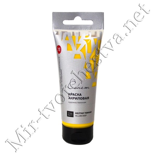 Краска акриловая, Желтая темная, 75мл, Сонет